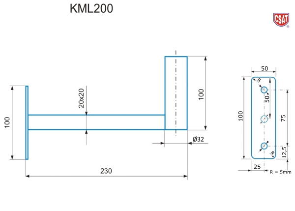 Platňová konzola * odstup 100mm * výška 100mm * priemer trubky 32mm