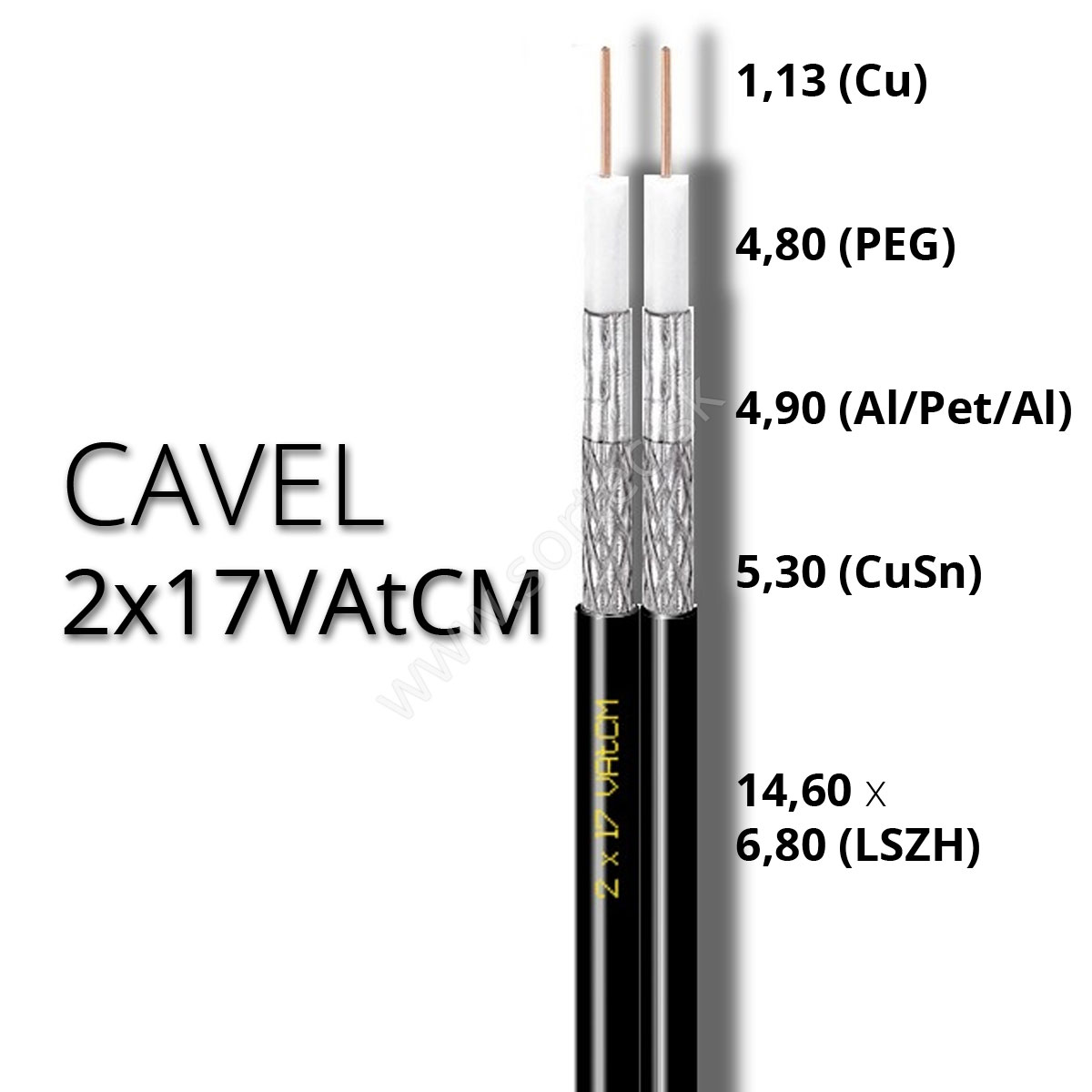 Multi Coaxial cable CAVEL 2x17VAtCM LSZH black Class A