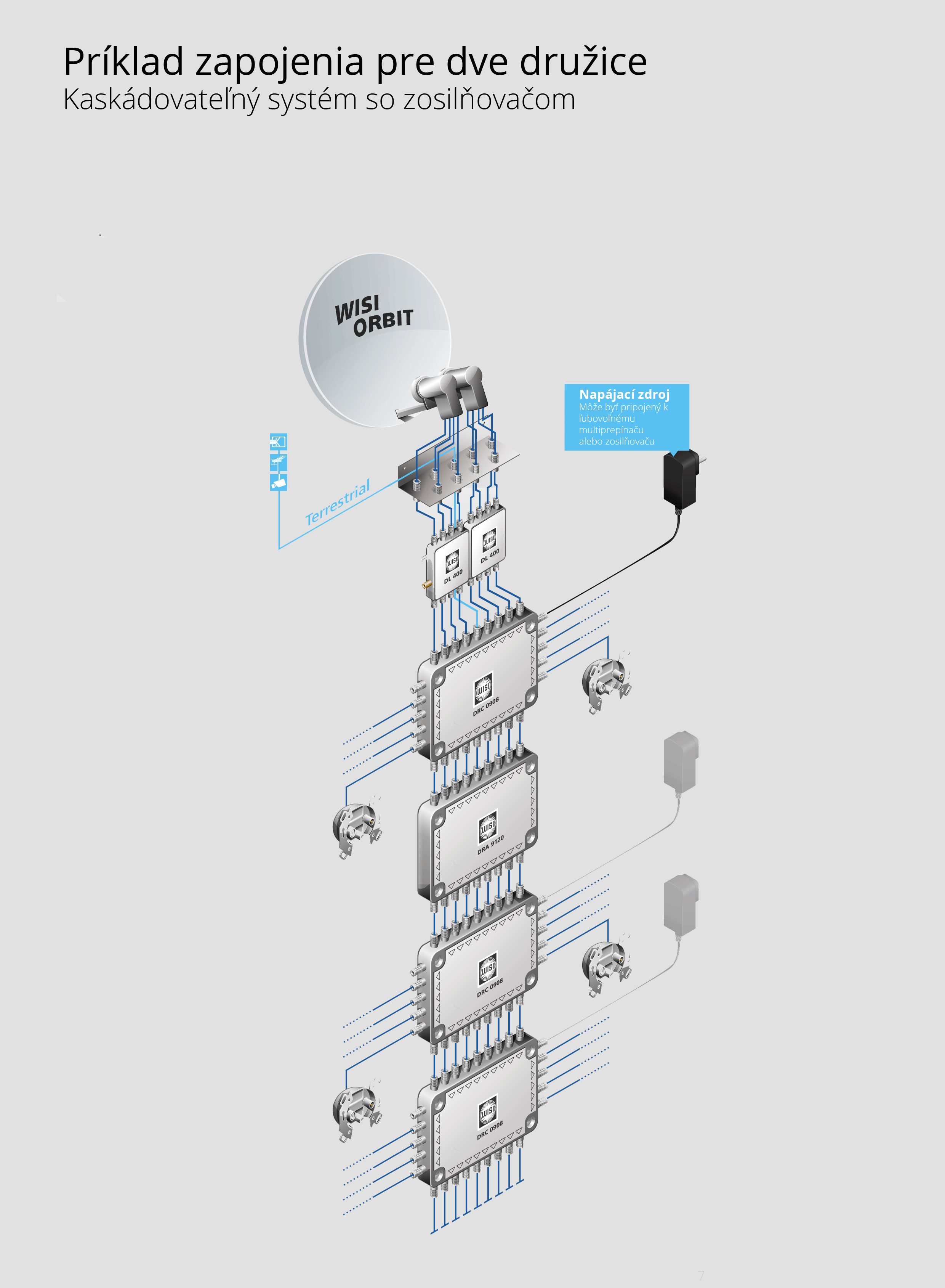 Multiprepínač pre 4 družice WISI DRC 1708 kaskádovatelný