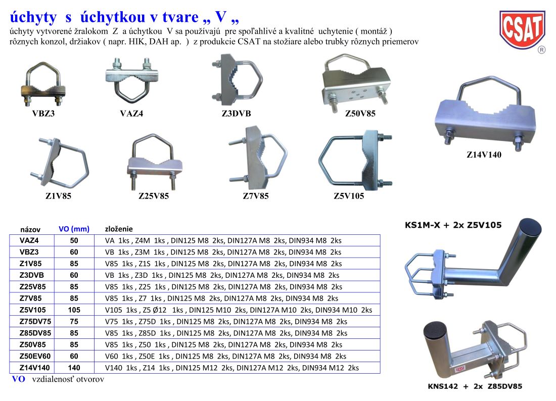 CSAT univerzálny strmeň Z1V85 určený pre uchytenie konzol na stožiar alebo trubku s priemerom od 32 do 70mm