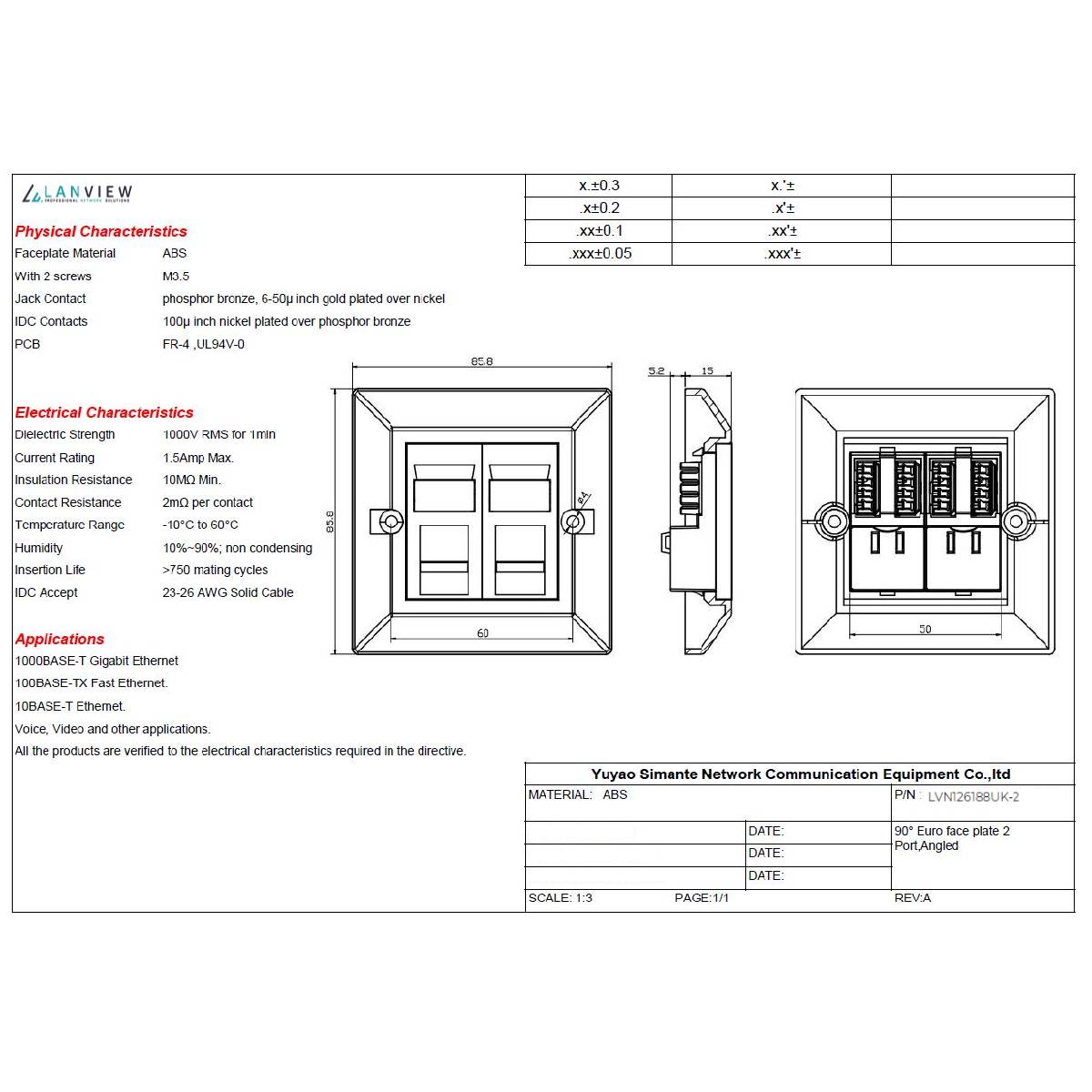 Krytka Lanview s konektormi 2x RJ45 Cat.6 netienená.
