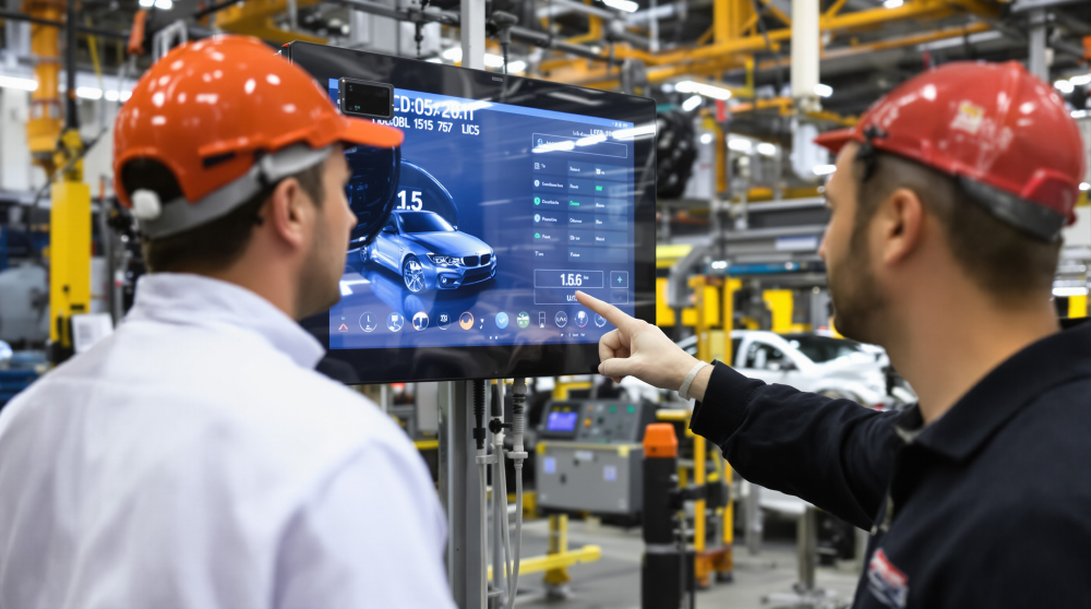 V priemysle nie je čas vysvetľovať všetko osobne. Obrazovky umiestnené priamo v priestore pomáhajú odovzdávať informácie rýchlo, jasne a bez zbytočných prestojov.