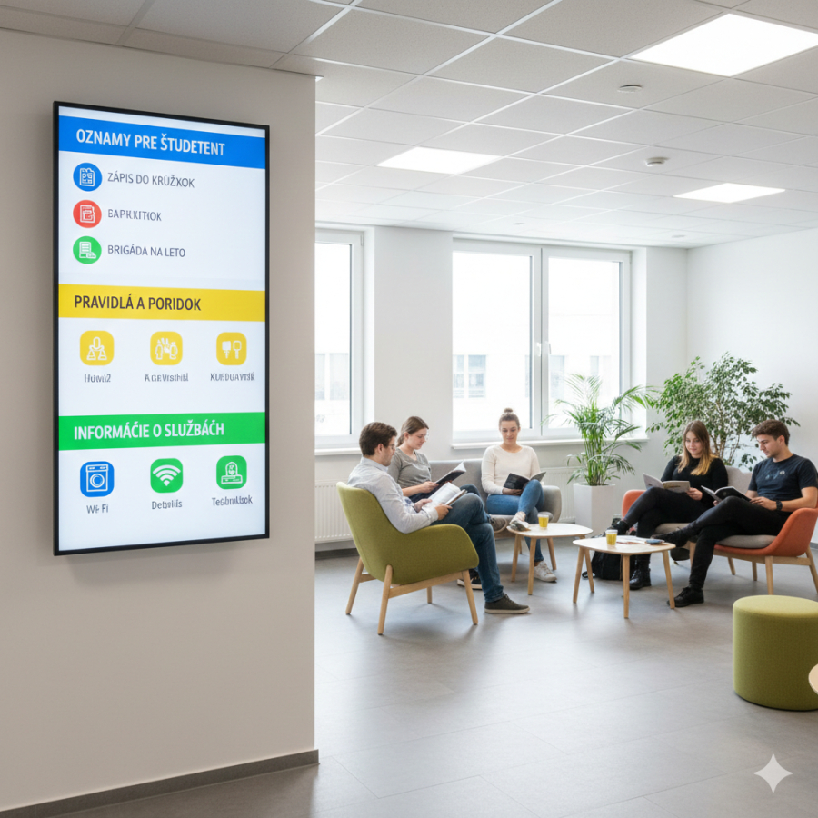 V školách a na univerzitách je dôležité, aby mali študenti, pedagógovia aj návštevníci rýchly prístup k aktuálnym informáciám. Digitálne obrazovky pomáhajú zjednodušiť komunikáciu, zlepšiť orientáciu v budove a zabezpečiť, aby sa dôležité oznamy dostali ku každému.